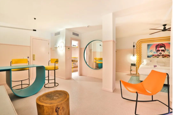 多巴胺不僅僅帶給我們快樂,同時也傳達了當下流行時尚靈感。在酒店中也有很多“多巴胺”風格設計,今天就和小H一起去打卡多巴胺色彩的酒店吧~